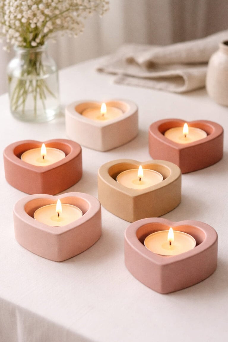 14. Heart-Shaped Clay Candle Holders