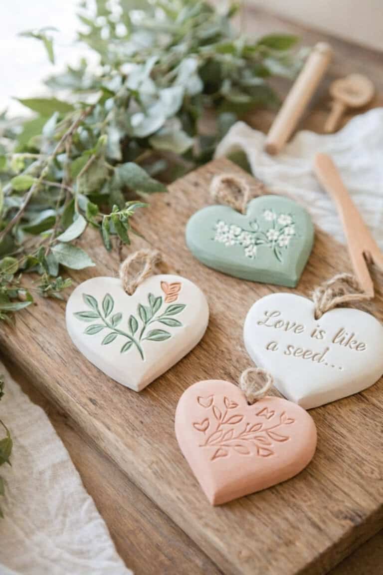 You can stamp initials, dates, or short words like “LOVE” or “XO,” and suddenly a plain clay heart becomes a meaningful keepsake.